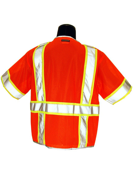 This polyester Ultra-Cool mesh class 3 safety vest has brilliant reflective edging for added visibility at night. Required for roadway and railway workers, highway surveyors, utility crews, and emergency responders..
