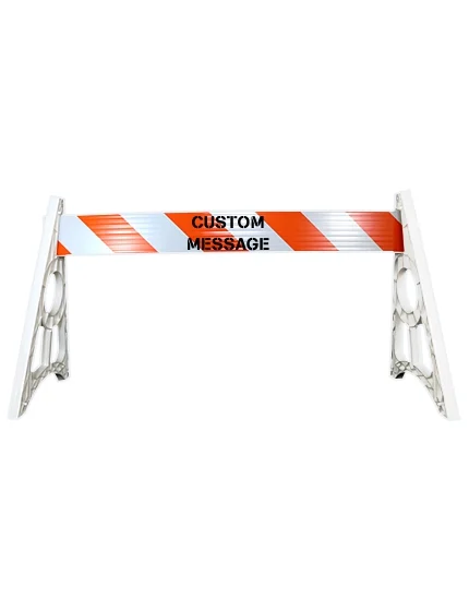 Our 6' Economy A-Frame Kit contains 2 injection molded barricade legs and a reflective rail that creates a complete six foot Type I or Type II barricade. LED flashers can be installed on the bolt holes at the top of each leg. These sawhorse style barriers can be placed lengthwise, creating an inexpensive, effective and highly visible pedestrian barricade for property or workzones. Contains molded in lugs for easy stacking and storage.